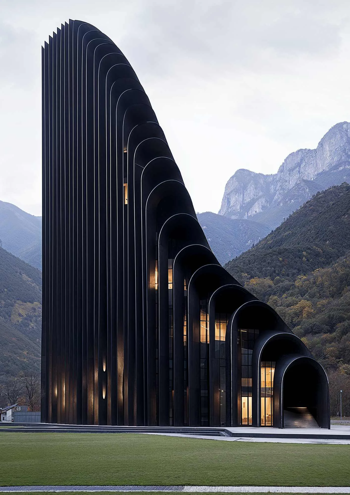 In “Shards Rising,” a crystalline monolith juts from the mountain, its sharp edges catching the fading sun like fractured glass. The inner core glows softly, slicing through dusk with the poise of revelation. From afar, the structure appears alien—half ruin, half meteorite—but step closer and its logic becomes intuitive. Gkinis orchestrates balance through opposition: light against stone, density against reflection. The building hums as if alive, its surfaces in constant negotiation with atmosphere. It is not built upon the landscape but within it, a luminous incision reminding us that presence requires friction.