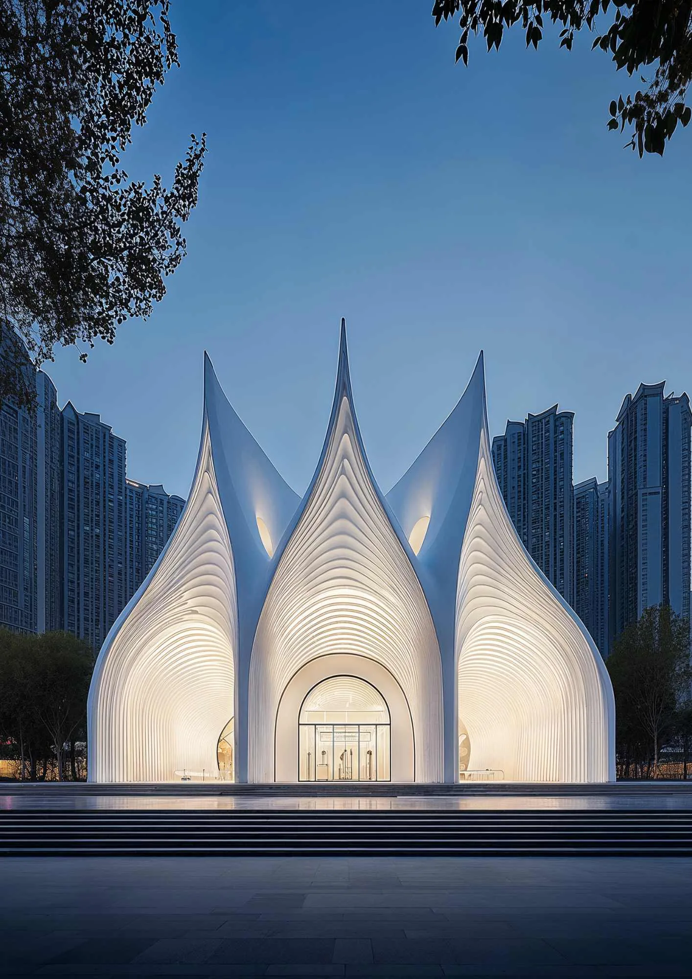 In “Neocosmic Arc,” Gkinis brings curvature to monumentality. A vast sweep of white concrete arcs across the sky like the trace of a comet, its underside radiating a muted warmth. The void it frames becomes cathedral—a space for contemplation where nothingness becomes sacred. The project demonstrates his devotion to the emotional potential of structure. What might have been mere engineering becomes meditation: a passage through light, silence, and scale.