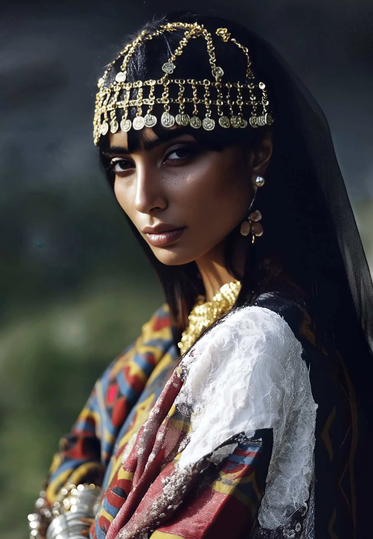 This collaboration between artist and algorithm amplifies the emotional resonance of her imagery. Shadows melt into one another with dreamlike fluidity; fabrics take on the softness of prayer; skin reflects glimmers of light that recall old stories told at dusk. In many ways, the use of AI mirrors the cultural process itself: history is interpreted, passed on, and reborn through each generation. Her visuals exist in this same cycle rooted in the past, rendered through the present, and reaching toward the future.